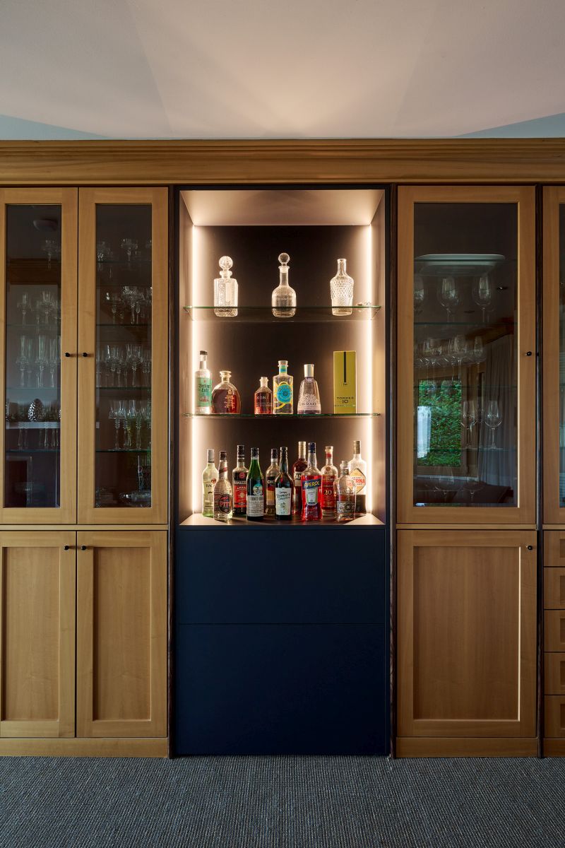 Athmosphärisch stimmige Einrichtung, professionell angefertigt vom Meistertischler.
